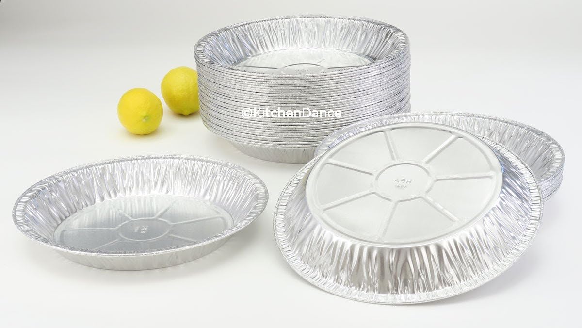 Pack of 100. Top outside diameter (rim to rim): 10-9/16" Top inside diameter: 9-11/16" Bottom diameter: 7-1/2" Depth: 1-5/16" 50 gauge aluminum foil Capacity: 44 fluid oz 50 Gauge Aluminum, This pan is strong and will not buckle under the heaviest of filling Give to Family and Friends to Keep, No more losing good pans, perfect for food service and giveaways No Messy Clean up- Bake and serve right from one pan. 100% food grade safe! OU Kosher certified. Proudly made in the USA by Handi-Foil of America.