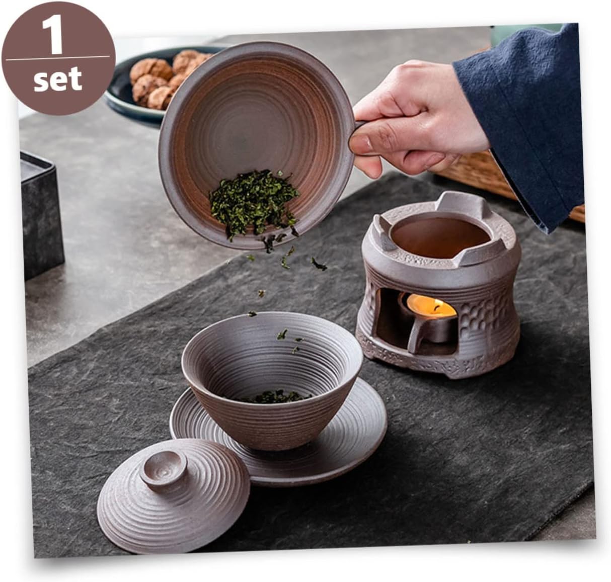 Package Include 1 x Tea Brazier 1 x Tea Tray 1 x Candle Holder Characteristics -Size: About 9.50X9.50X8.70cm/3.73X3.73X3.42in warmer -Color: Brown tea heater -Material: Ceramic teapot with warmer -Product Info:Grilled tea stove - Suitable for home, office, hotel, tea house, coffee shop, dessert shop, etc teapot warmer. - Large candle hole reserved design, in exchange for convenient, full combustion teapot warmer stand. - Tea industry professional baking equipment, let you experience the most fragrance Teapot Holder - It is widely applied in brewing tea, warming tea, heating food, etc tea warmer. - This set of tea pot warmer tools are using of ceramic material of , and practical tea warmers.Goods Informationtea stand The bottom is polished and smooth, and placed smoothly and not easy to slide.teapot warmer stand It has a simple appearance but is especially practical.warmer base for teapot Use it to welcome your tea friends, friends or guests.tea tray Made of ceramic material, this teapot warmer set is to use