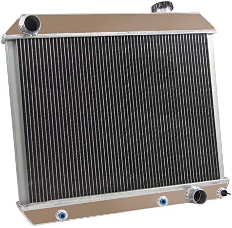 ECMRAD Aluminum Radiator is produced and designed to provide maximum cooling efficiency to prevent engine cooling failure. It is made of full aluminum light-weight, and high-heat transferring aluminum features a tube and fin design that, dramatically increases surface area that enables the heat to dissipate more efficiently. It has an increased durability over the factory plastic end tank radiator, and much inmprovwed engine cooling. Most importantly, it has a much higher capacity for coolant than stock ones, which means that your cooling system will be more efficient and will be more resistant to temperature surges in racing applications.This Aluminum Radiator Compatible for: for Oldsmobile 1961 1962 Olds Dynamic for 63-66 CHEVY TRUCK PICKUP SUBURBAN 1963-1966 for CHEVY PICKUP SUBURBAN 63 64 65 66 for Pontiac Bonneville 61-66 for Chevy Truck C10 C20 C30 63-66 for CHEVY TRUCK C/K SERIES/PONTIAC PICKUP 61-66 for CHEVY GM C/K Truck 61-66 Radiator Size Details: Core Size: 17-1/2" High x 25-1/4" Wide x 2 1/4'' Thick Overall Size: 23-3/8" High x 25-1/2" Wide Upper inlets: 1-3/4" located on the DRIVER side. Lower outlets: 1-3/4" located on PASSENGER side. Transmission Oilcooler: include, built-in Surface finish: Aircraft 5057 grade aluminum tank & core Petcock Drain: OEM style brass petcock drain Radiator Cap: CNC machined filler neck and capPackage Included: 1 X 3-Row Aluminum Radiator w/ Radiator Cap in a Carton box