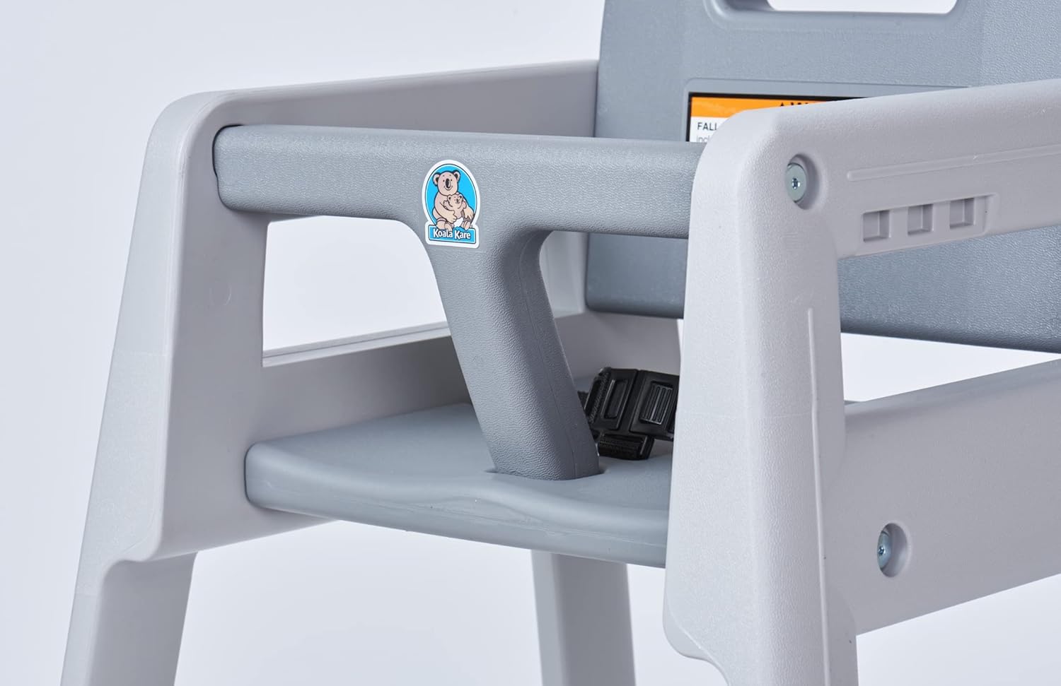 Restaurant staple with its updated design on the traditional plastic high chair. Clean lines and smooth surfaces make for quick and easy cleaning. Durable constructions provides long lasting use. Integrated handle makes this chair easy to maneuver around the dining room. Meets the ASTM F404-18 and EN safety standards. Optional ASTM compliant tray (KB851) accommodates different feeding needs. Product includes instructions and hardware for assembly.
