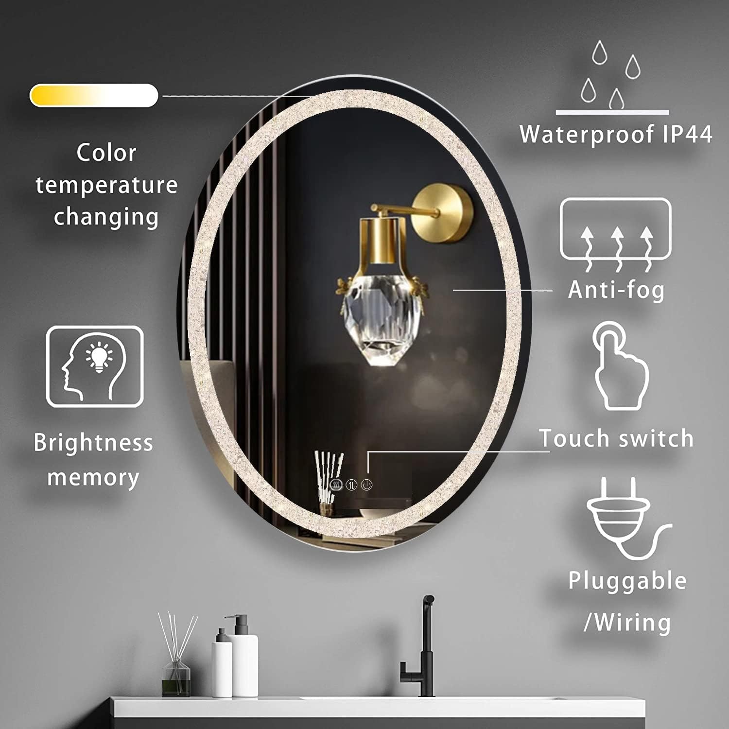 | Additional Features | Touch-adjustable brightness and light color, One-key anti-fog, Dazzling crystal sand design, Long-lasting LED lifespan, IP44 waterproof rating |