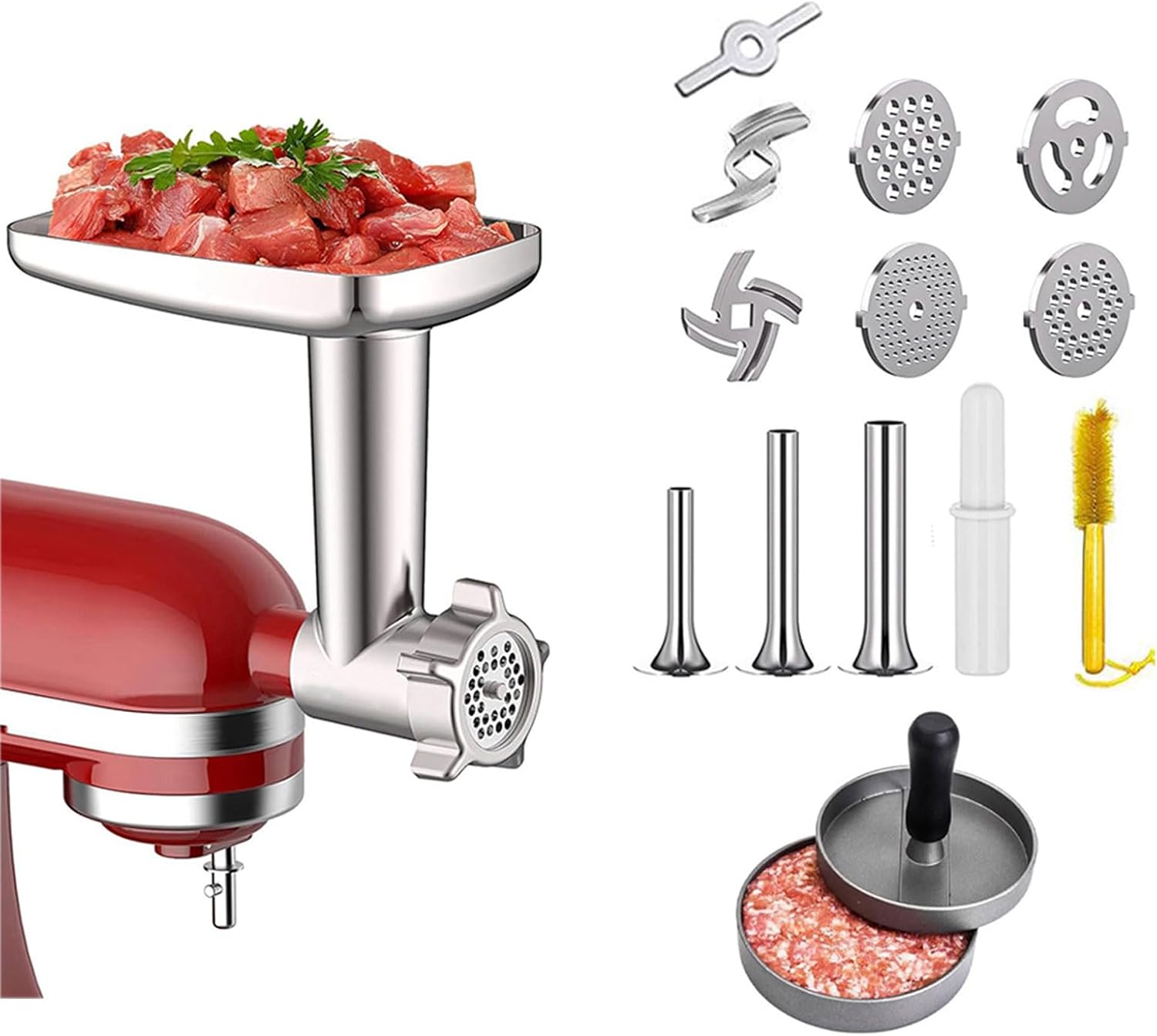 Meat Grinder Attachment Meat Grinder Accessory Sausage Stuffer Tubes Meat Grinder Plate Suitable for Kitchen AppliancesFeatures:Create homemade burgers and sausages with this meat grinder attachment, designed for various stand mixers.Process a variety of ingredients, from fruits and vegetables to hard cheeses, useing this multifunctional attachment that fit most stand mixers.Perfect for food enthusiasts and culinary professionals seeking control over their food preparation.Enhances your cooking by creating personalized meat blends, flavorful burgers, and tastys sausages with ease. Suitable for both home cooking people and professionals.Discover the convenience of this easy to meat grinder attachment, an essential tool for any kitchen that values efficiency and Specifications MetalSize: As Pictures ShowPackage Includes:1 Set Meat Grinder AttachmentNote:Please allow 1-2cm errors due to manual measurement. Please make sure you donot mind before order.Due to the differences between different monitors, the picture may not reflect the actual color from the item.