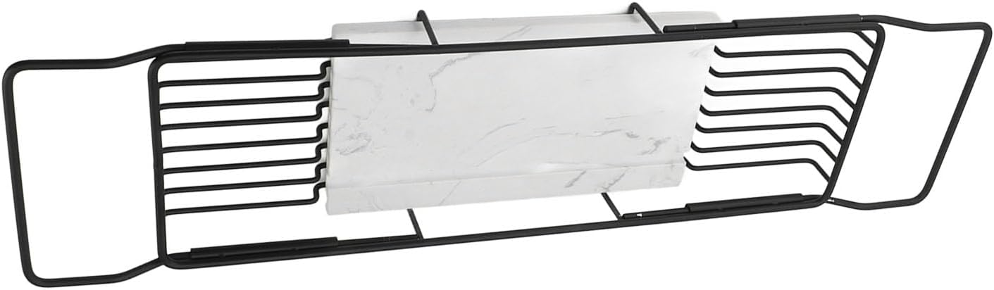 1. FINE DESIGN: Our bathtub organizer features multiple drainage holes and a retractable design on both sides. Please rest assured to use. 2. SPACE SAVING: Our retractable shelves make your bathroom look cleaner. You can place various small items. Convenient for you to retrieve and place items in the storage cabinet. 3. EXPANDABLE: The expandable bathtub shelf is an additional space that can easily organize your bathtub and shower necessities. The bathtub tray is retractable and suitable for most bathtubs. Both sides can be stretched and pulled back. 4. MULTI FUNCTIONAL: Our bathtub tray can be placed in the kitchen sink to fruits and vegetables, dishes, and chopsticks, as well as in the bathtub to hold shower balls and other toiletries. 5. ANTI SLIP: No special skills or tools are required. Place your books on the shelf, place your phone and wine glass in the designated slot of the bathtub, as a cool bathtub accessory worth owning, and enjoy a wonderful bath time. Spec: Item Type: Metal Marble Bathtub Rack Material: Stainless Steel, Marble PackageList: 1 x Rack 1 x Marble