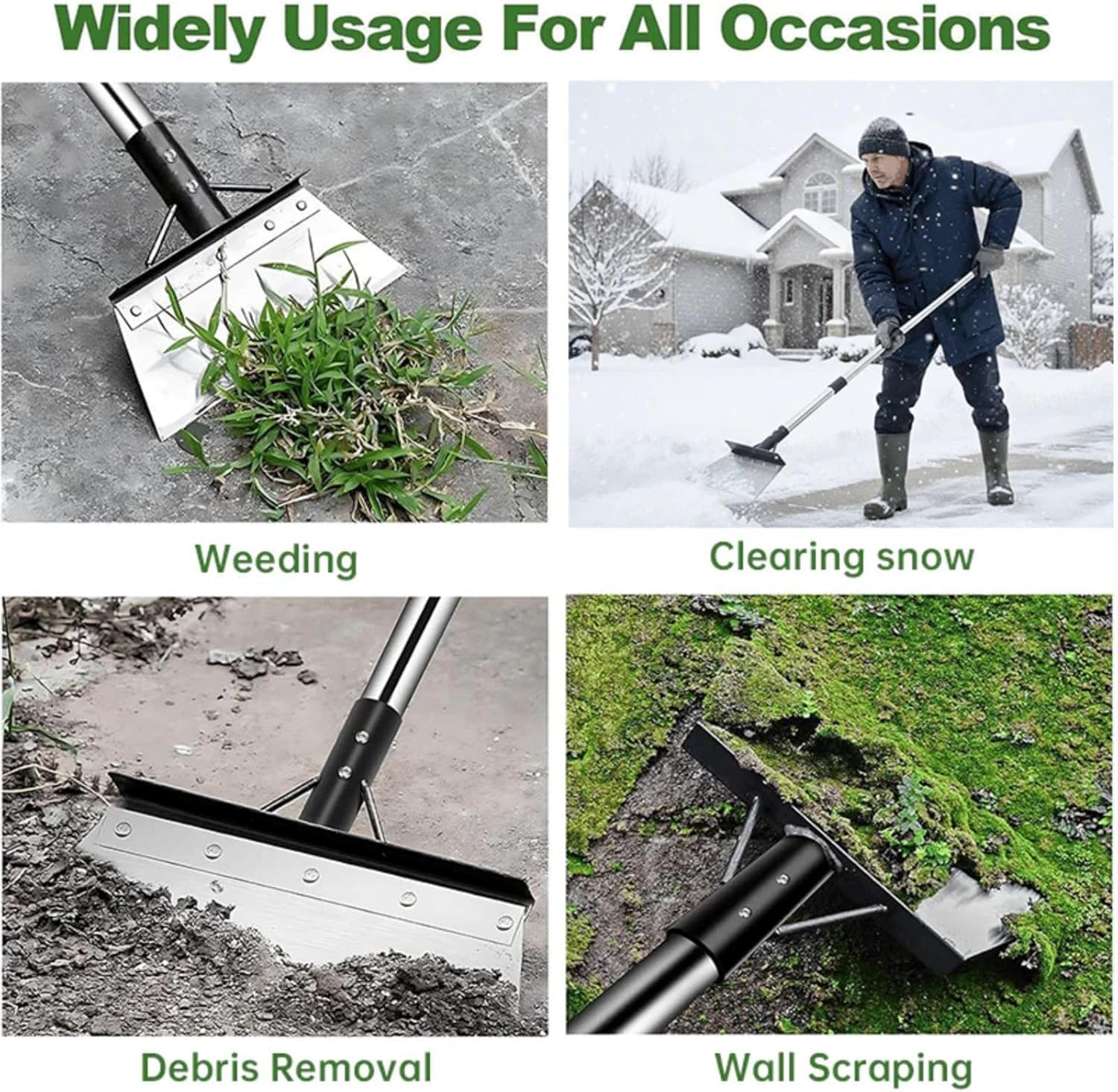 Feature: 1.Heat-treated blade remains sharp and wear-resistant for heavy scraping tasks. 2.Detachable stainless steel pole protects your back—work comfortably without bending. 3.Perfect for clearing garden weeds, winter ice, moss, and stubborn floor dirt. 4.Triple-rivet design ensures a solid, wiggle-free connection for safe, steady use. 5.Screw-in handle sections disassemble quickly for compact storage and easy transport. Specifications: Name: Multifunctional Cleaning Shovel, Color: Silver Product Specifications: 47/63inch Material: PP, Stainless Steel Handle Type: Adjustable & Detachable (Handle included) Material: Heavy-Duty Manganese Steel Blade Size: 4 × 9 inches Package Includes: 1 Pc * Multifunctional Cleaning Shovel 1 Pc * Detachable Handle 1 Pair * Work Glove Notes: 1. Due to manual measurements, please allow slight measurement deviations 2. Due to different monitors and different lighting, actual color may be slightly different