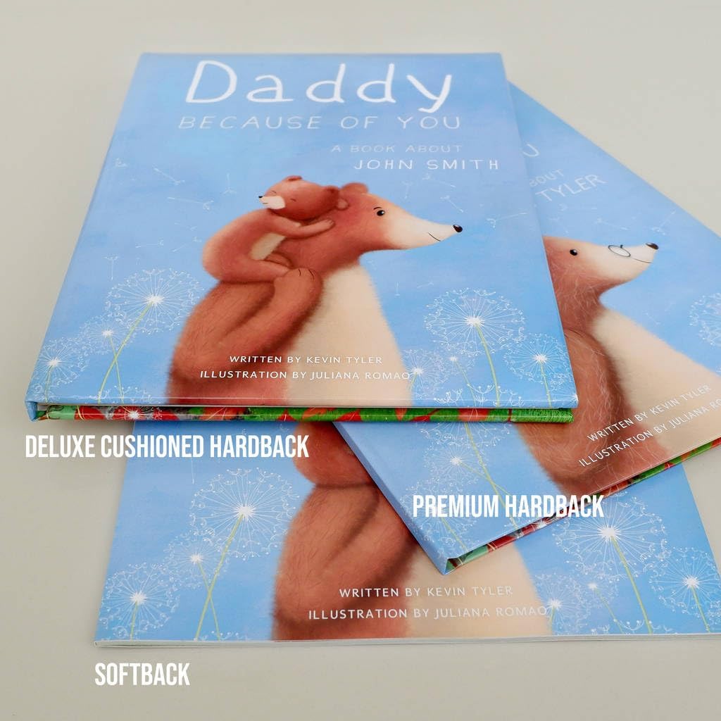 The "Personalised Daddy Book 'Because Of You'" is a heartfelt, custom-made book that's an ideal gift for new fathers and seasoned dads alike. Perfect for first time dad as a gift, this dad book captures the essence of fatherhood, celebrating the unique bond between a father and his child. Whether it's for a first fathers day book, baby book for new dad, or fathers day book from kids, this personalized book makes a beautiful and lasting memory. This book is a wonderful choice for those searching for a meaningful addition to any books for dad. It's also a fantastic way to bond, serving as a daddy and me book or a father and son book. The personalization aspect allows it to be a special making every story session with my dad or my grandpa unique and memorable. As a dad baby book, it provides a wonderful opportunity for dads to bond with their little ones, making it an ideal choice for baby books for new dads or as a baby book daddy. It's not just a book for dad; it's a keepsake filled with love, a perfect dad book from kids that says 'i love you dad'. This book is an exceptional gift choice for any occasion, be it a birthday, Christmas, Father's Day, or just as a thoughtful gesture. Its versatility makes it suitable as a dad daughter book, daddy books for daughter, or even as a dads storybook. It's a treasure that any dad would be proud to read and share, making it a cherished part of any dad books for kids collection.