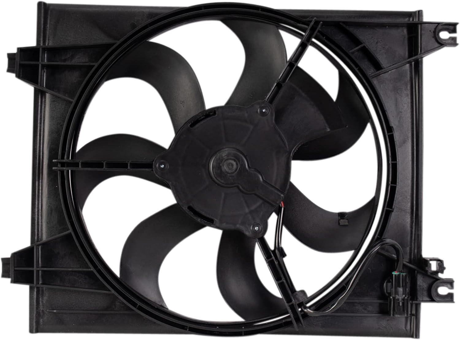 A/C Condenser Cooling Fan AssemblyFitmentKia Spectra 2004 - L4 2.0L Passenger Side 2005-09 - Passenger SideKia Spectra 5 2005-09 - Passenger SideProduct AttributesFan Quantity: 1Fan 1 Diameter: 12.2 inTerminal Quantity: 2Fan 1 Diameter: 310 mmFan 1 Blade Quantity: 7Blade Color: BlackConnector Gender: MaleTerminal Gender: MaleFan Clutch Mounted: NoBlade Material: PlasticShroud Material: PlasticReference Numbers610890674-6001297730 2F00097730-2F000977302F000KI3113112
