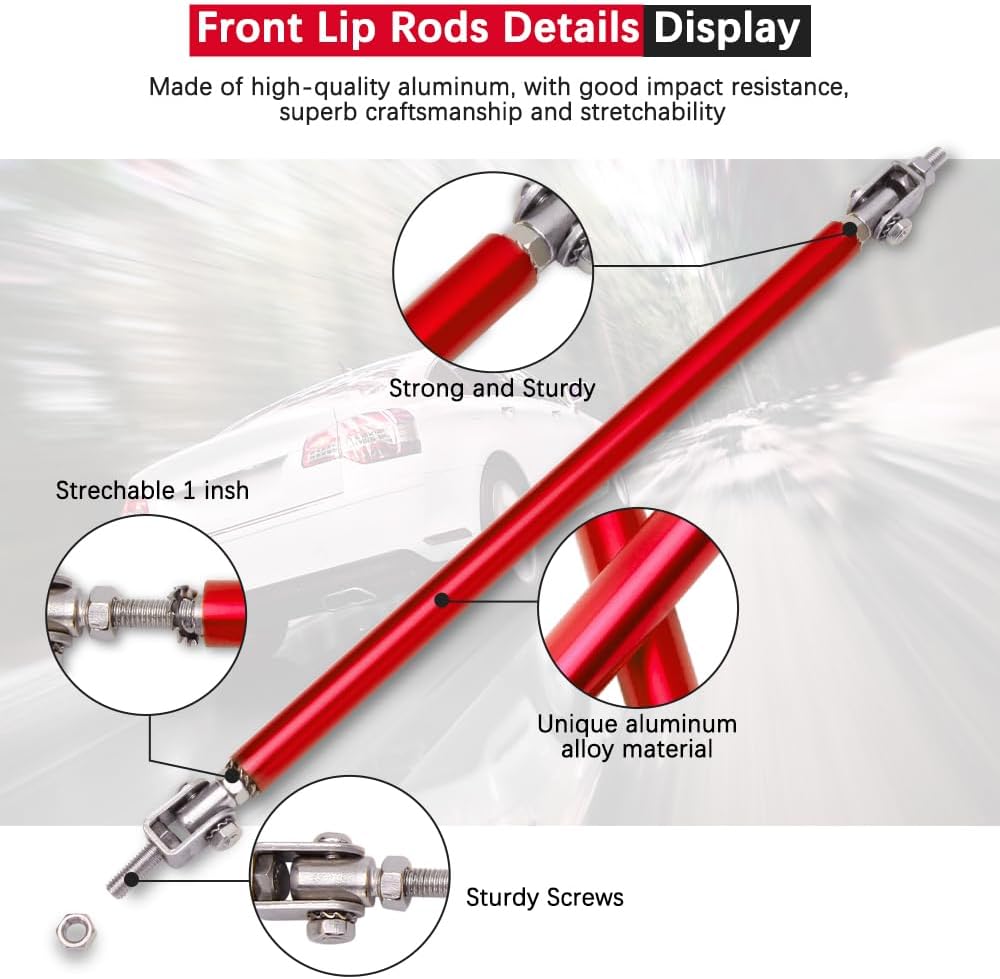 | Included Components | 4 PCS Kit Front Bumper Lip + 2PCS 8"-11" Adjustable Splitter Rods |