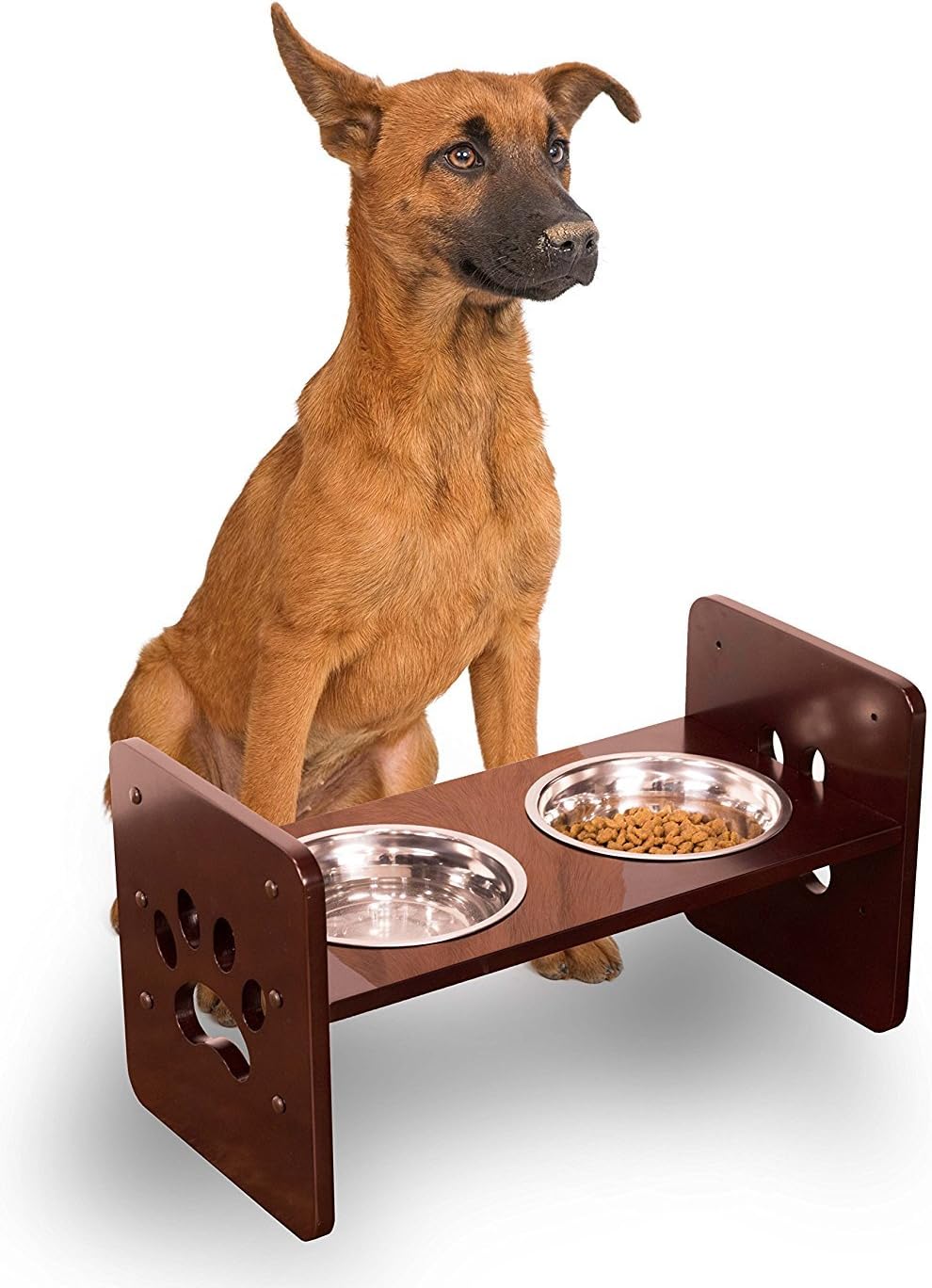 The adjustable pet feeder can be set to 3 different heights to help ensure optimal Feeding poster. Removable bowls allow for easy cleaning and access to food, while each holding up to 4 cups of food.